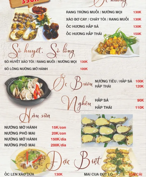 Nhà hàng nổi bật với thực đơn đa dạng, từ bò tơ hấp cuốn bánh tráng, heo sữa quay đến lẩu nấm hải sản. Một trong những món ăn đặc trưng tại đây là cá bóp nấu lẩu Thái, được chế biến tỉ mỉ, mang lại hương vị thơm ngon khó cưỡng.