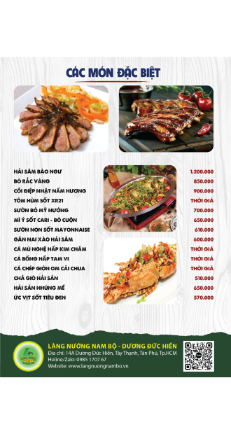 Đặc biệt, Làng Nướng Nam Bộ còn phục vụ các sự kiện, tiệc nhỏ với phòng VIP có sức chứa từ 25 đến 30 khách. Để đặt bàn, bạn có thể gọi hotline 0918 226 789 hoặc truy cập website www.langnuongnambo.vn để biết thêm chi tiết. Đừng bỏ lỡ cơ hội tận hưởng những món ăn tinh túy miền Nam tại đây nhé!