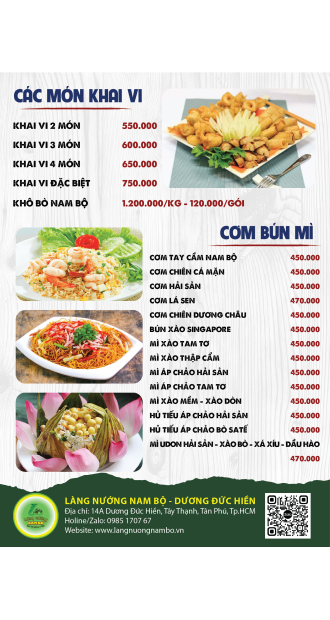 Để đặt bàn hay tham khảo thêm thông tin, bạn có thể liên hệ qua hotline 0918 226 789 hoặc gọi đến các số điện thoại 028 3863 2309 và 028 3862 2569. Đừng bỏ lỡ cơ hội trải nghiệm hương vị miền Nam ngay tại Làng Nướng Nam Bộ nhé!
