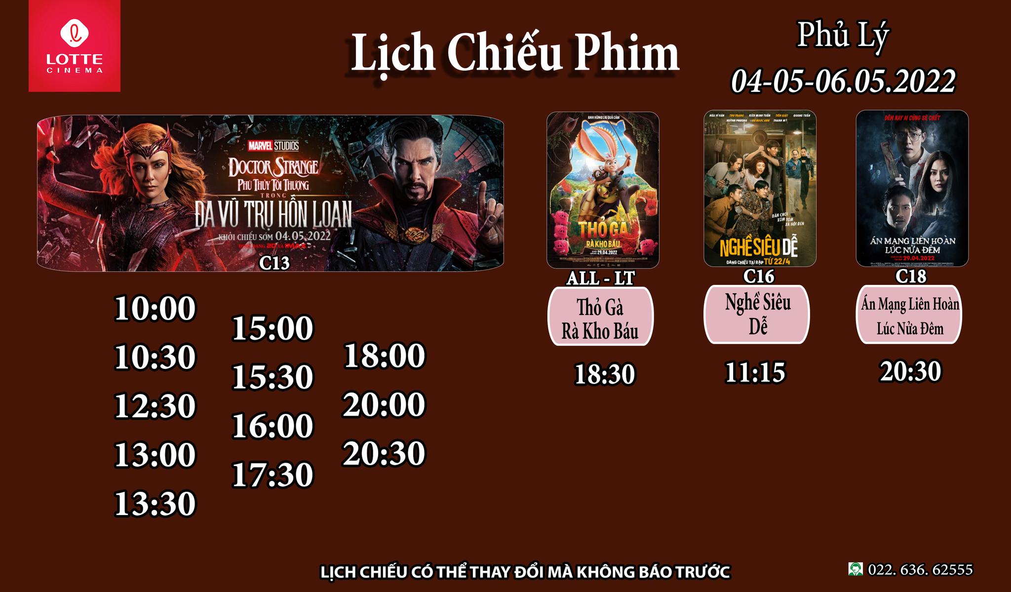 Chú ý rằng lịch chiếu phim có thể thay đổi mà không báo trước và thời gian bắt đầu có thể chênh lệch 15 phút do các quảng cáo. Tuy nhiên, chắc chắn rằng bất kỳ ai ghé thăm Lotte Cinema sẽ đều có những giây phút giải trí tuyệt vời.