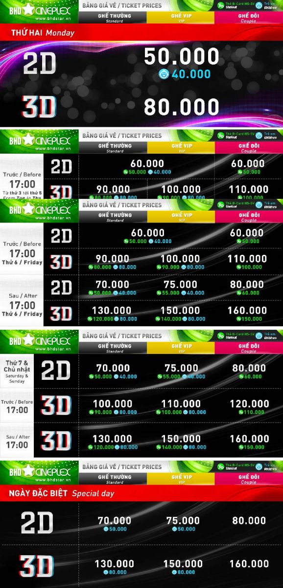 Hiện tại, rạp đang chiếu nhiều bộ phim hấp dẫn như “G-DRAGON IN CINEMA [Übermensch]” và “Truy Tìm Long Diên Hương”, đáp ứng đa dạng sở thích của khán giả. Đặc biệt, trong dịp lễ như Giỗ Tổ Hùng Vương hay ngày Quốc Khánh, rạp có nhiều suất chiếu đặc biệt với giá vé áp dụng riêng.