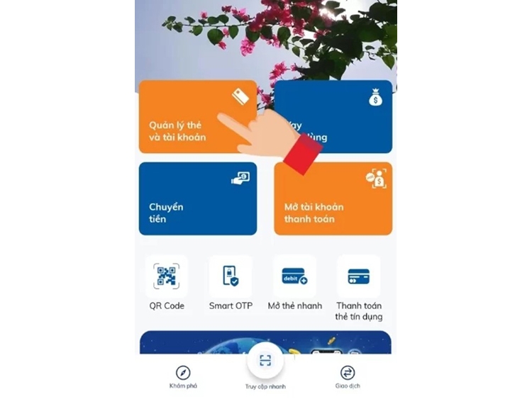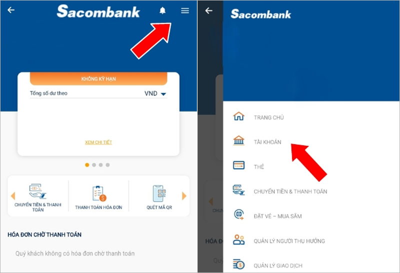 Việc xem lịch sử giao dịch trên ứng dụng Sacombank Pay thật sự rất dễ dàng và tiện lợi. Bạn có thể tra cứu nhanh chóng chỉ cần vài bước đơn giản. Đầu tiên, hãy đăng nhập vào ứng dụng Sacombank Pay hoặc Sacombank eBanking. Sau đó, bạn chọn chức năng quản lý tài khoản để đến màn hình chính.