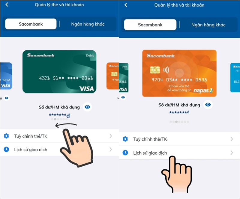 Nếu bạn là khách hàng của Sacombank và muốn xem lịch sử giao dịch trong một năm qua, hãy yên tâm vì điều này rất dễ dàng. Bạn có thể tra cứu trực tiếp trên ứng dụng Sacombank Pay hoặc mBanking. Chỉ cần đăng nhập vào ứng dụng, sau đó chọn “Quản lý thẻ và tài khoản” để xem thông tin chi tiết về các giao dịch đã thực hiện.