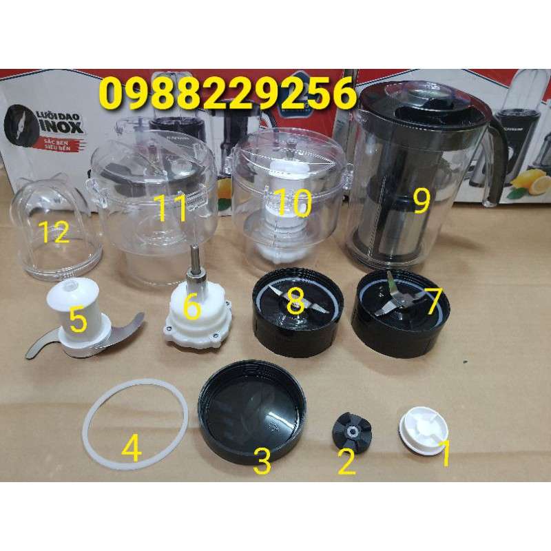 Phụ kiện máy xay sinh tố là những bộ phận không thể thiếu giúp máy hoạt động hiệu quả và bền bỉ hơn. Trong đó, lưỡi dao được xem là quan trọng nhất vì nó có nhiệm vụ cắt, xay nhuyễn nguyên liệu. Lưỡi dao thường có thiết kế 6 cánh, giúp xay được đa dạng các loại thực phẩm, kể cả đá và các loại hạt cứng như hạt điều hay hạnh nhân.