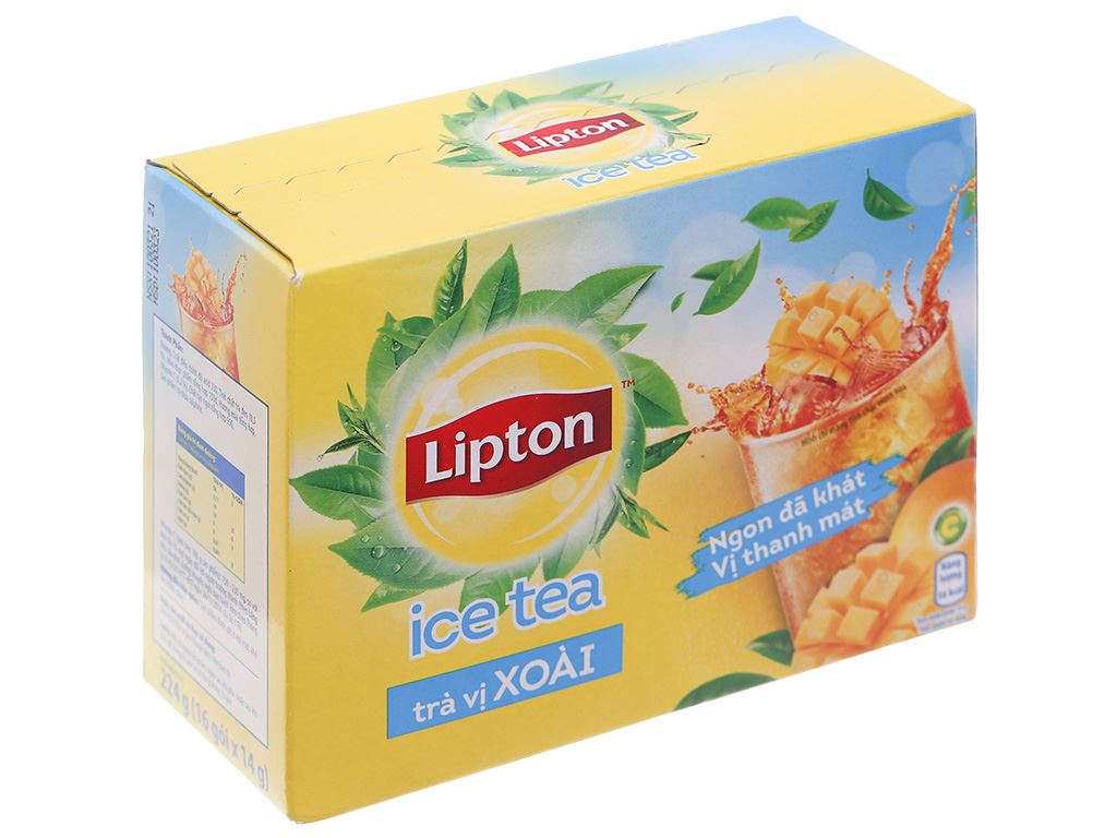 Ngoài ra, sản phẩm còn chứa chất điều chỉnh độ acid, muối i-ốt và màu thực phẩm, đảm bảo cho người tiêu dùng một thức uống an toàn và chất lượng. Với quy cách 14g cho mỗi gói và 16 gói trong một hộp, Lipton Ice Tea có thể dễ dàng mang theo bên mình, lý tưởng cho những ai yêu thích sự tiện lợi và hương vị thơm ngon.