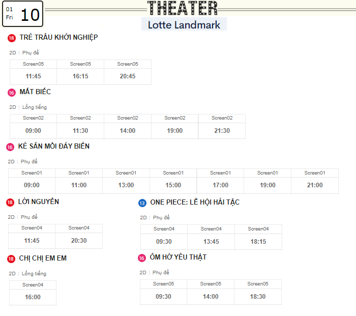 Cách đặt vé cũng rất đơn giản. Bạn chỉ cần tải ứng dụng Lotte Cinema hoặc sử dụng ví điện tử như Momo, Zalopay hay VNPAY. Giá vé bắt đầu từ 70.000 VND, thật hấp dẫn phải không nào? Nếu bạn đến xem phim sau 17h vào cuối tuần, mức giá vé chỉ 115.000 VND, nhưng bạn còn có thể nhận được ưu đãi siêu hấp dẫn vào các ngày đặc biệt hoặc cho nhóm dưới 22 tuổi.