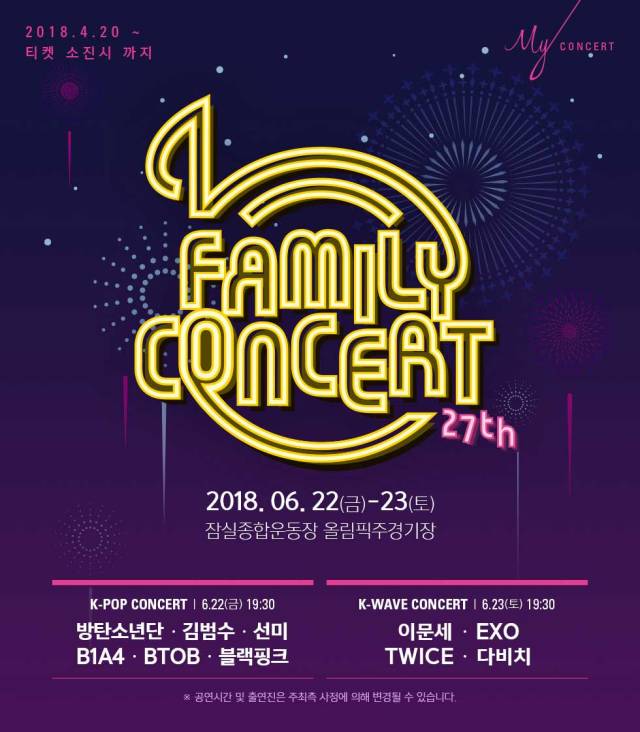 Lotte Duty Free Family Festival 2018 diễn ra vào ngày 22 và 23 tháng 6 tại Sân vận động Olympic ở Seoul, Hàn Quốc, đã thu hút sự chú ý của hàng triệu fan hâm mộ. Đây là một sự kiện hoành tráng với sự tham gia của nhiều nghệ sĩ nổi tiếng như BLACKPINK, BTS, B1A4, BtoB, Sunmi và Kim Bum Soo.