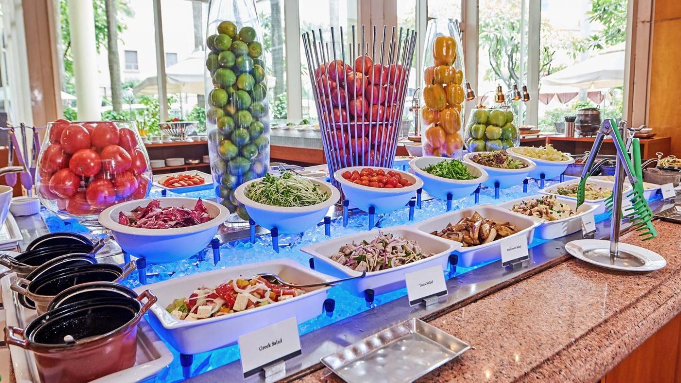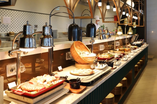 Buffet trưa tại đây có mức giá 788.000 VNĐ, bao gồm đồ uống như nước ngọt, trái cây và cà phê. Nếu bạn muốn thêm hương vị, hãy chọn gói buffet với rượu vang chỉ 1.138.000 VNĐ. Khách sạn phục vụ nhiều món ăn đa dạng từ Việt Nam, châu Á đến quốc tế, tất cả đều được chế biến bởi những đầu bếp danh tiếng.