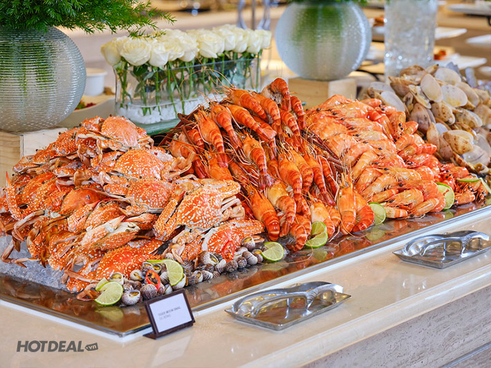 Đặc biệt, buffet trưa với mức giá 620.000 VNĐ cho mỗi khách và chỉ 340.000 VNĐ cho trẻ em từ 5-11 tuổi là lựa chọn lý tưởng giúp cả gia đình có những giây phút thư giãn bên nhau. Nếu bạn muốn trải nghiệm buffet tối, mức giá sẽ tăng lên 1.250.000 VNĐ nhưng đi kèm là đa dạng các món ăn hải sản tươi ngon.