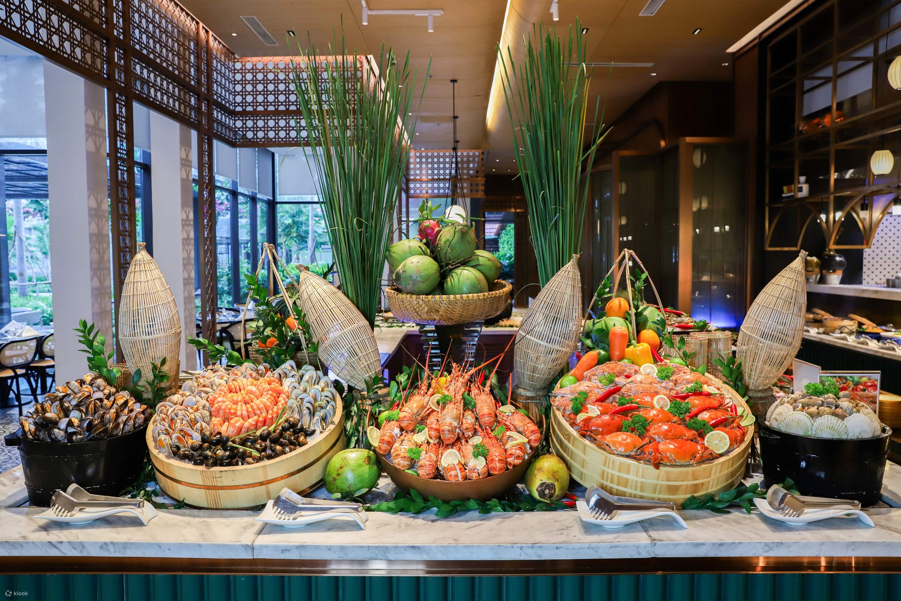 Buffet được tổ chức hàng ngày, mở cửa từ 2:30 PM đến 5:00 PM, và món ăn phong phú từ hải sản tươi ngon sẽ khiến bạn hài lòng. Không gian của nhà hàng cũng rất thoáng đãng, mang đến cảm giác ấm cúng với tầm nhìn ra hồ bơi. Hãy đến và thưởng thức bữa ăn đáng nhớ này cùng gia đình và bạn bè nhé!
