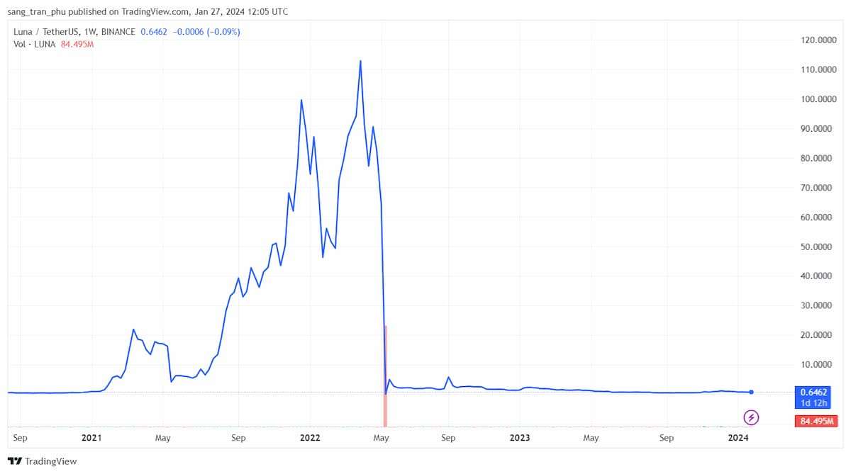 Tuy nhiên, Luna cũng trải qua một cú sụp đổ nghiêm trọng vào tháng 5 năm 2022, khiến blockchain Terra gốc phải đổi tên thành Terra Classic, token Luna cũ thành Luna Classic (LUNC), và một phiên bản mới của Terra cùng Luna 2.0 được tạo ra để tiếp tục phát triển. Dù vậy, Luna vẫn được xem là một dự án tiền điện tử có ý tưởng đột phá và tiềm năng phát triển trong lĩnh vực stablecoin thuật toán.