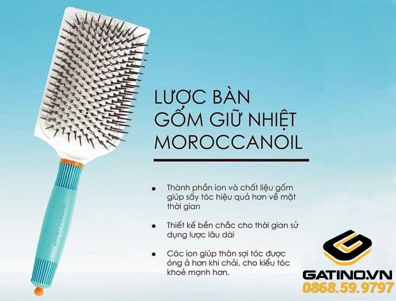 Nếu muốn đầu tư xịn sò, thử Moroccanoil nhé! Lược gỡ rối cao cấp giảm từ 689.000 xuống còn 350.000 đồng, hoặc phiên bản mini chỉ 200.000 đồng, chống tĩnh điện siêu tốt nhờ công nghệ ion, tóc óng ả tự nhiên.
