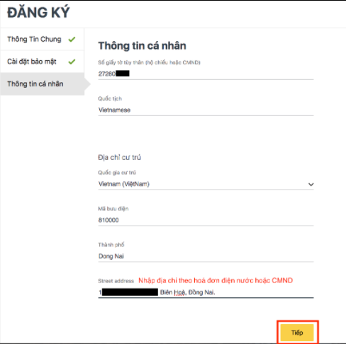 Lưu ý, địa chỉ bạn điền nên khớp với thông tin trên giấy tờ tùy thân như CMND hoặc CCCD để tránh sai sót khi xác minh danh tính. Bạn có thể nhập địa chỉ chi tiết như số nhà, tên đường, quận/huyện, thành phố rồi chọn mã bưu điện phù hợp với địa chỉ đó. Tránh viết tắt hay bỏ dấu để hệ thống nhận diện chính xác hơn.