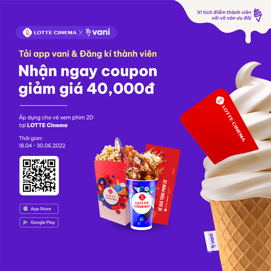 Đừng quên săn các coupon giảm giá khi tải app Vani và đăng ký thành viên, đảm bảo bạn sẽ không bỏ lỡ bất kỳ khuyến mãi nào. Cùng chạy ngay đến Lotte Cinema để thưởng thức những bộ phim đặc sắc với mức giá ưu đãi nhé!
