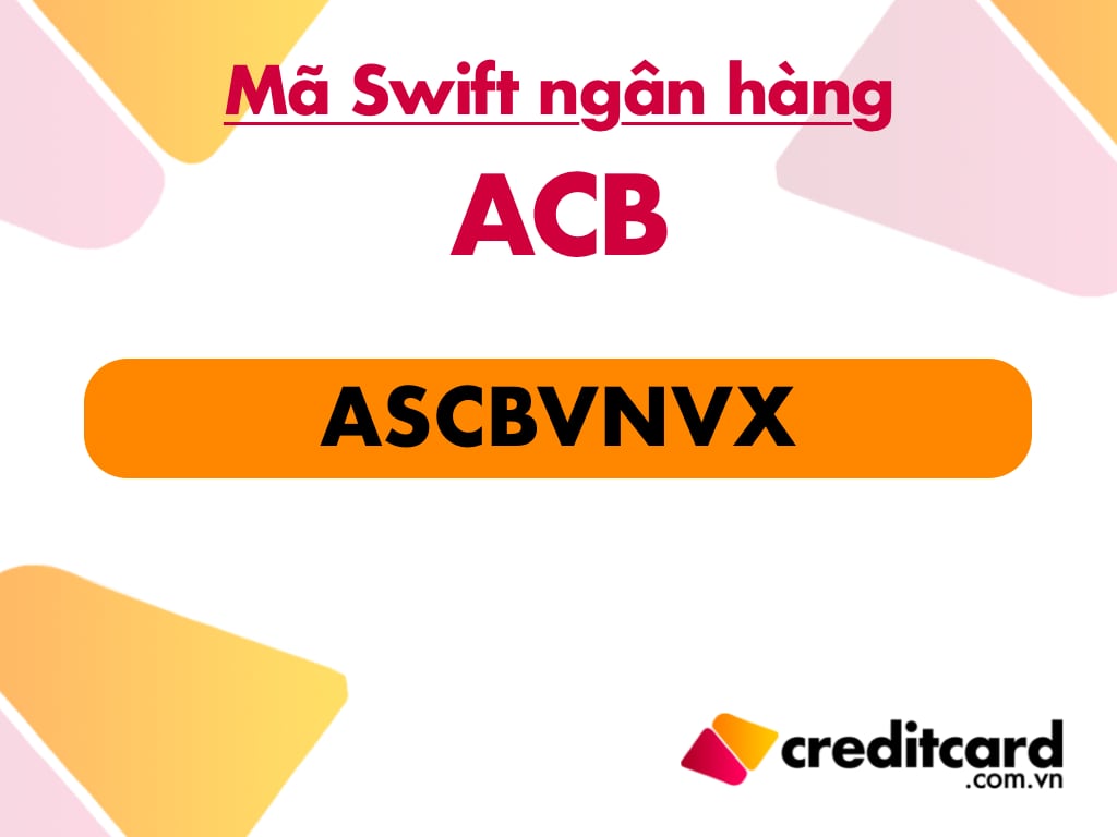 Mã SWIFT của ngân hàng ACB, hay còn gọi là Ngân hàng Thương mại cổ phần Á Châu, là ASCBVNVX. Đây là mã rất quan trọng mà khách hàng cần biết khi thực hiện các giao dịch quốc tế. Khi bạn gửi hoặc nhận tiền từ nước ngoài, mã này sẽ giúp xác định rõ ngân hàng ACB và đảm bảo giao dịch được thực hiện nhanh chóng và chính xác.