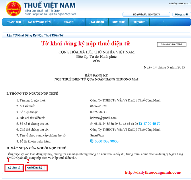 Sau khi mở tài khoản ngân hàng, doanh nghiệp sẽ chọn mẫu đăng ký phù hợp với ngân hàng mình sử dụng, tải về, điền đầy đủ thông tin, ký và đóng dấu rồi gửi lại cho ngân hàng để kích hoạt dịch vụ nộp thuế điện tử. Trước đó, doanh nghiệp cần đăng nhập vào trang thuế điện tử, chọn ngân hàng, điền thông tin chủ tài khoản và số tài khoản rồi gửi thông tin này lên ngân hàng để hoàn tất đăng ký.