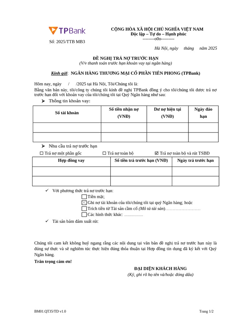 Xác Nhận Tất Toán Khoản Vay VPBank