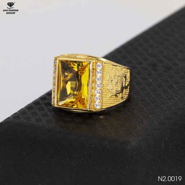 Các mẫu nhẫn nam vàng 18K hiện nay rất đa dạng, từ kiểu dáng trơn đơn giản đến những thiết kế đính đá quý như Topaz trắng, Ngọc Lục Bảo, Sapphire hay kim cương. Mỗi loại đá không chỉ làm tăng vẻ đẹp mà còn mang ý nghĩa phong thủy riêng, giúp chủ nhân thu hút may mắn, thành công trong công việc và cuộc sống. Ví dụ, nhẫn vàng 18K phối đá Sapphire ánh tím rất được ưa chuộng bởi sự trẻ trung, tinh tế, còn nhẫn đính kim cương lại thể hiện đẳng cấp và quyền lực.