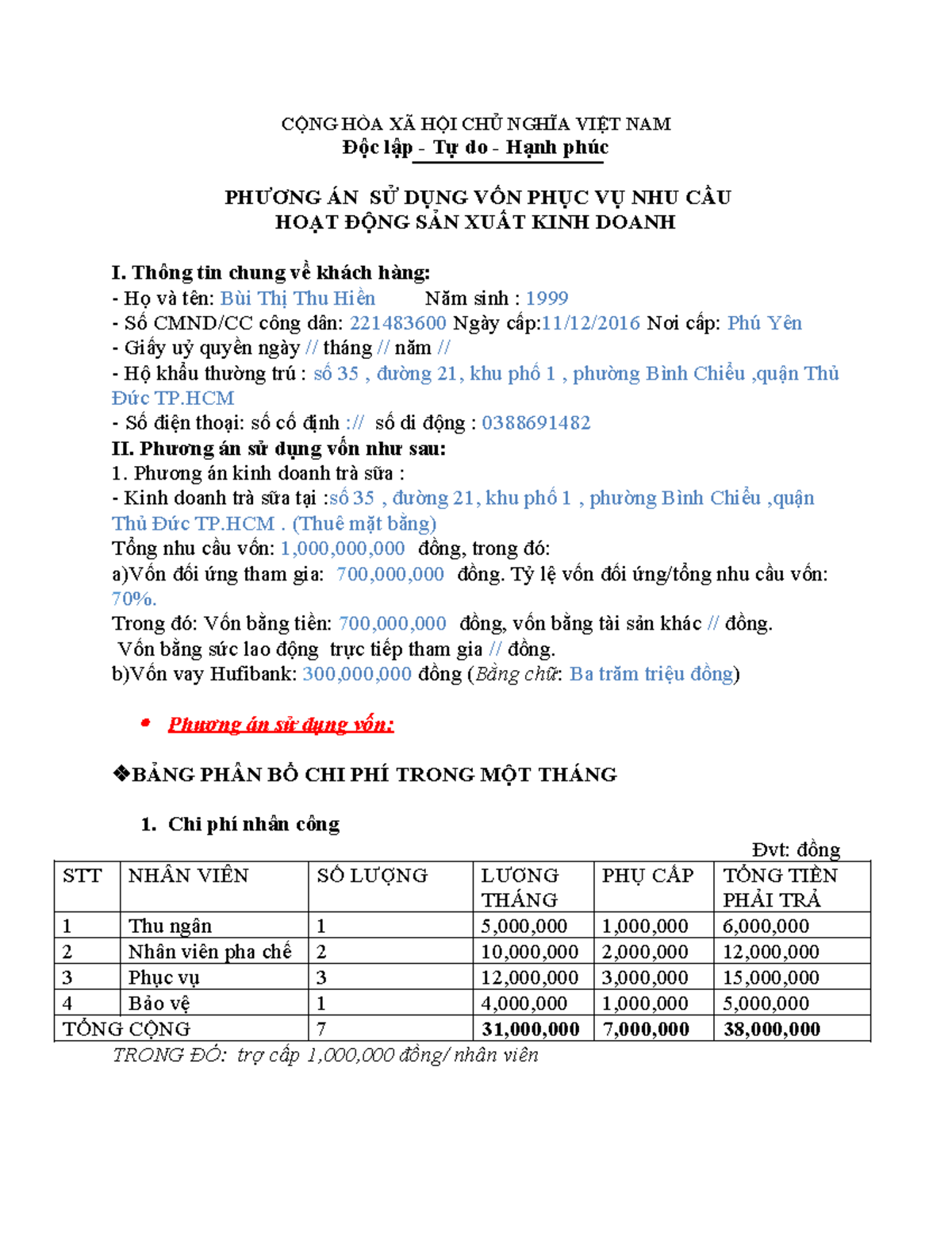 Trong hành trình khởi nghiệp, một mẫu phương án kinh doanh rõ ràng và chi tiết chính là bản đồ dẫn lối cho bạn. Nó không chỉ giúp bạn định hình mục tiêu mà còn là công cụ quan trọng để thu hút sự quan tâm của nhà đầu tư. Hãy nhớ rằng, việc chuẩn bị cẩn thận sẽ giúp bạn tự tin hơn khi đối diện với thử thách. Bằng cách này, bạn không chỉ xây dựng một doanh nghiệp bền vững mà còn tạo ra giá trị cho cộng đồng xung quanh. Hãy hành động ngay hôm nay, biến ý tưởng của bạn thành hiện thực!