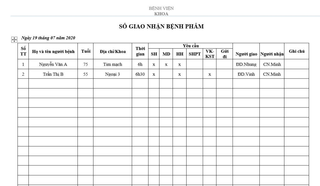 Mẫu Sổ Giao Nhận Hồ Sơ Bằng Word