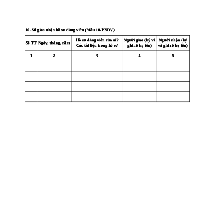 Mẫu sổ giao nhận hồ sơ tiện lợi và dễ sử dụng