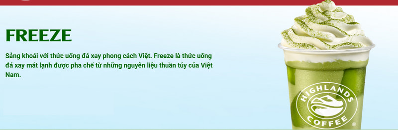 Dòng sản phẩm Freeze của Highlands Coffee là sự kết hợp hoàn hảo giữa đá xay mịn, sữa tươi và các hương vị đặc trưng như socola, cà phê, trà xanh. Freeze có độ ngọt vừa phải, phù hợp với khẩu vị của người Việt, đặc biệt là giới trẻ và những người yêu thích đồ uống mát lạnh.