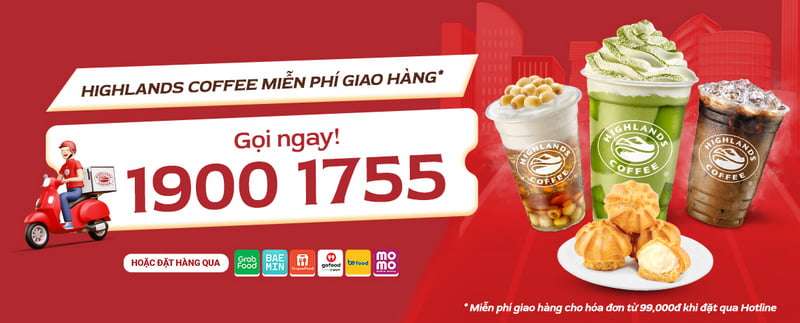Highlands Coffee đã mở rộng dịch vụ giao hàng trên toàn quốc thông qua ứng dụng riêng và các nền tảng giao đồ ăn phổ biến như Grab, Be, ShopeeFood. Khách hàng có thể dễ dàng đặt món yêu thích của mình chỉ với vài thao tác đơn giản trên điện thoại.