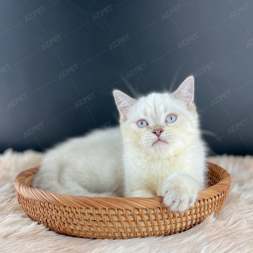 Nhờ gen lặn, cả bố mẹ phải mang gen Hyma thì mèo con mới có màu sắc này. Chúng thường có đôi mắt xanh dương đậm, càng xanh càng quý, khiến khuôn mặt tròn trịa của mèo Anh thêm phần cuốn hút.