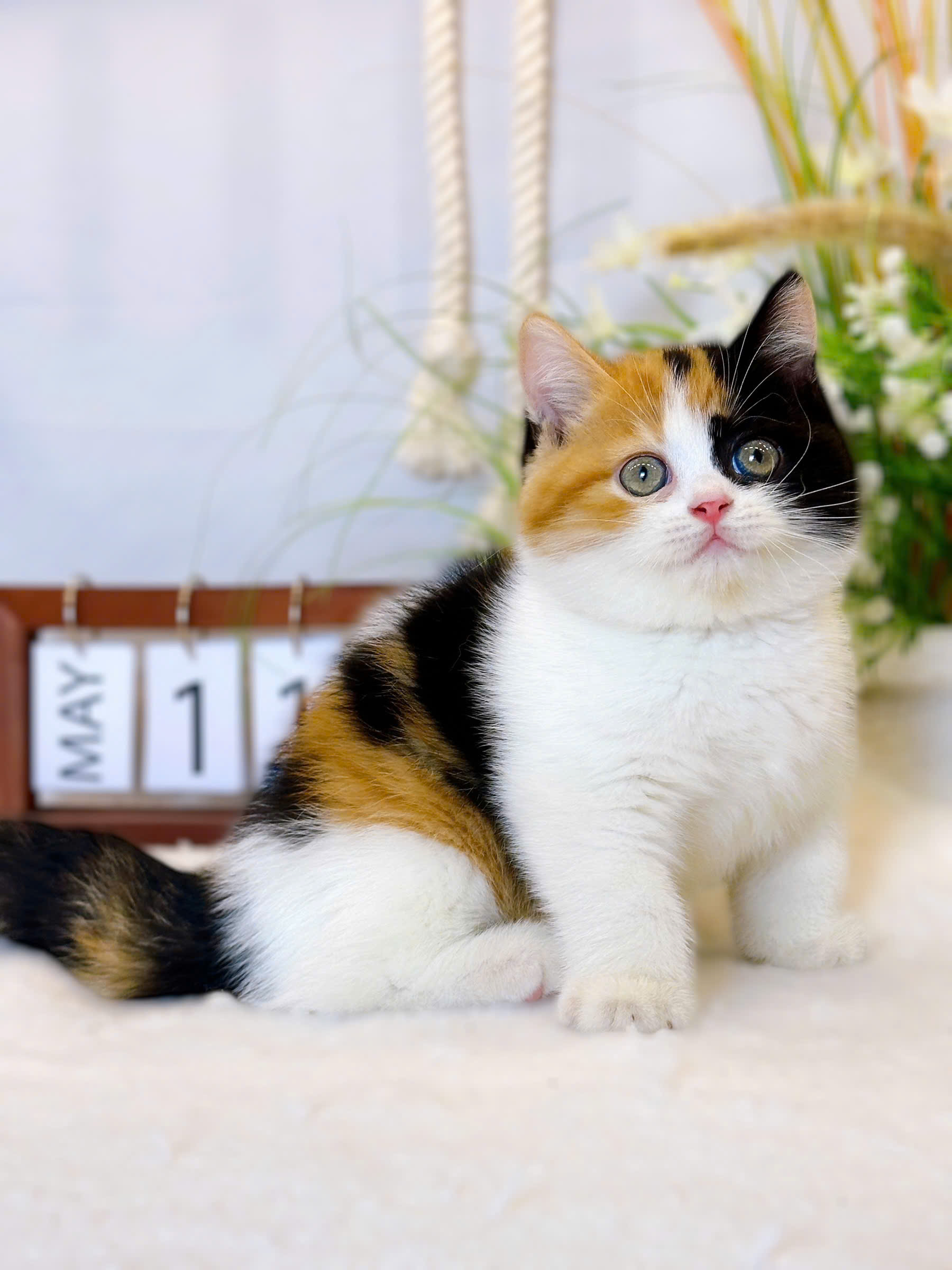Mèo Anh lông ngắn màu tam thể là những “boss” siêu đáng yêu với bộ lông ba màu đặc trưng: trắng, cam/đỏ và đen, phân bổ thành các mảng ngẫu nhiên trên cơ thể, tạo nên hoa văn độc nhất như một bức tranh sống động. Bộ lông ngắn, dày mịn như nhung, ôm sát thân hình vạm vỡ, giúp chúng luôn gọn gàng và dễ chăm sóc.