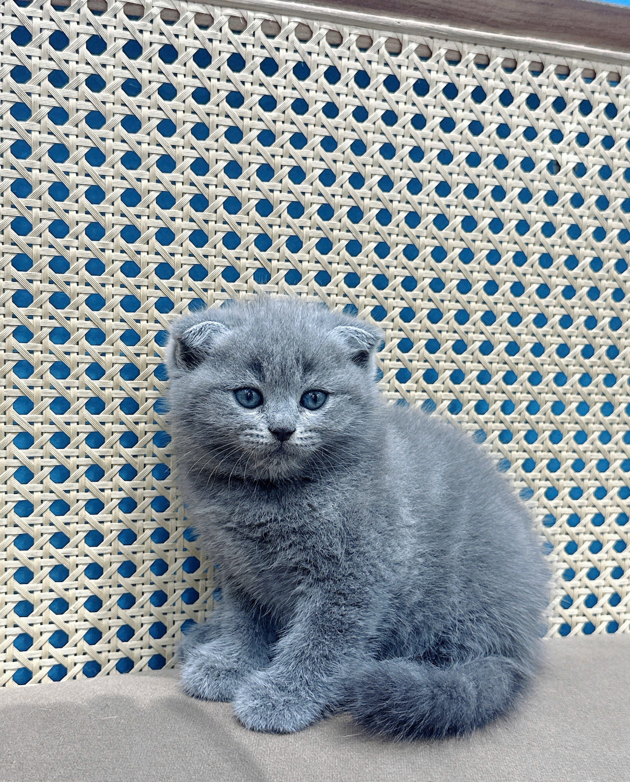 Mèo Anh lông ngắn xám xanh dễ thương, tai cụp