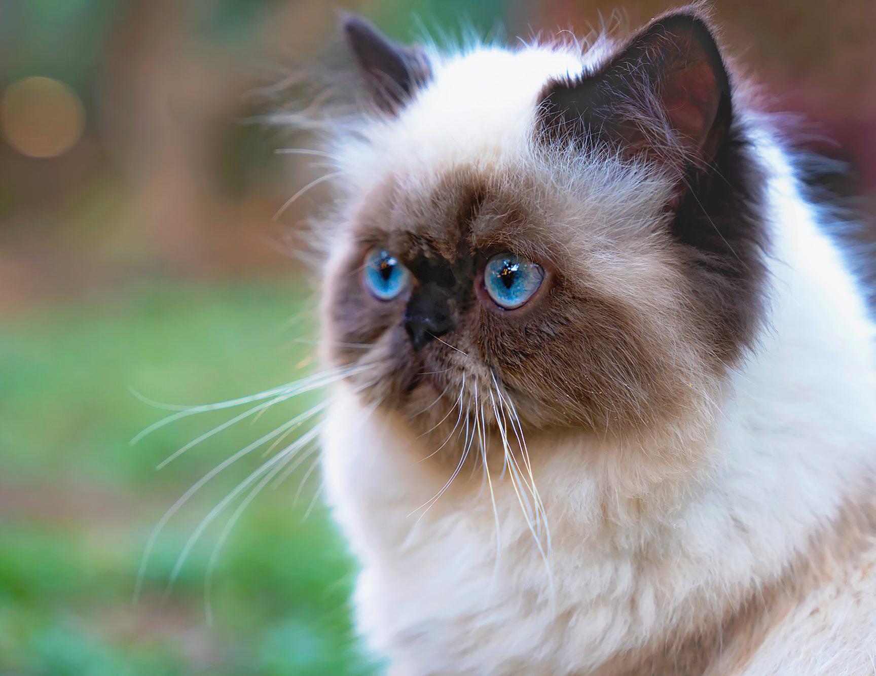 Mèo Himalaya nổi bật với lông dài mịn, điểm xuyết màu tối ở tai, má, chân và đuôi – trông như đeo mặt nạ quyến rũ. Chúng thông minh, gắn bó sâu sắc với gia đình.