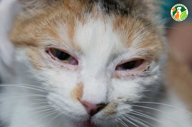 Nhiễm trùng mắt cũng là nguyên nhân đáng chú ý. Vi khuẩn, virus như Herpesvirus, Chlamydia felis, calicivirus hoặc nấm có thể gây viêm kết mạc, khiến mắt sưng đỏ và tiết dịch vàng xanh. Virus herpes mèo đặc biệt nguy hiểm vì có thể gây loét giác mạc.