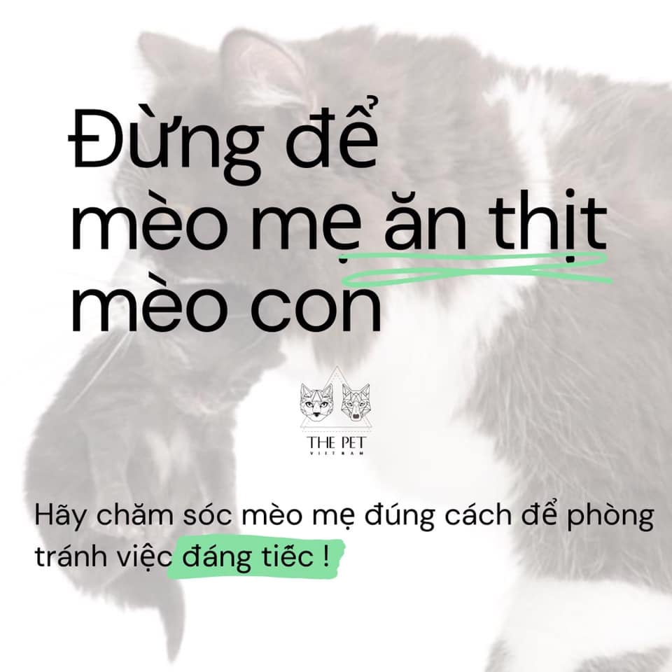 Không chỉ mèo cha, mèo mẹ đôi khi cũng làm vậy, nhưng lý do khác hẳn. Nếu mèo con chết non, yếu ớt hay dị tật, mẹ sẽ ăn để lấy dinh dưỡng, sản xuất sữa nuôi những con khỏe mạnh còn lại. Hoặc khi mẹ thiếu kinh nghiệm – như sinh đẻ lần đầu, dưới 1 tuổi – chúng hoảng loạn, nhầm lẫn nhau thai với con.
