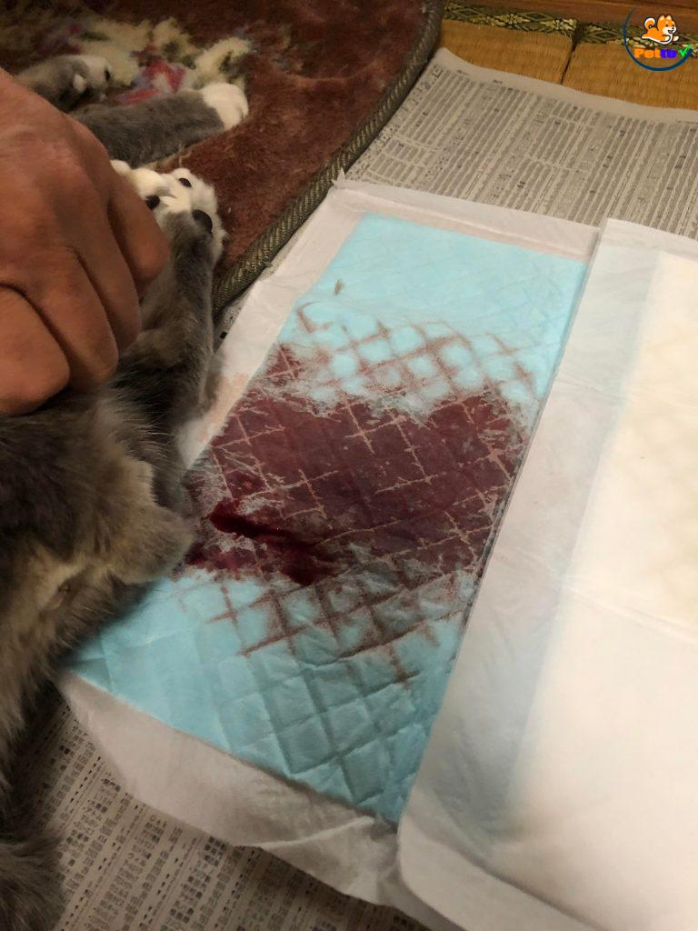 Hình ảnh mèo đi ngoài ra máu đáng lo ngại