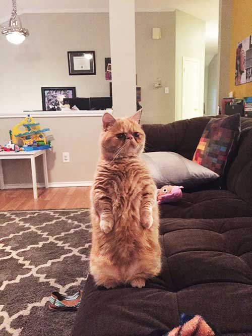 Thường thì mèo đứng hai chân để quan sát thế giới xung quanh một cách tốt hơn. Với đôi chân linh hoạt, chúng dồn trọng lượng cơ thể lên hai chân sau, vươn người lên cao để nhìn xa hơn, đặc biệt khi phát hiện đồ chơi, thức ăn hay thứ gì đó thú vị. Giống như cách chúng ta kiễng chân ngó qua hàng rào vậy, hành động này cho thấy mèo đang tò mò và hứng thú.