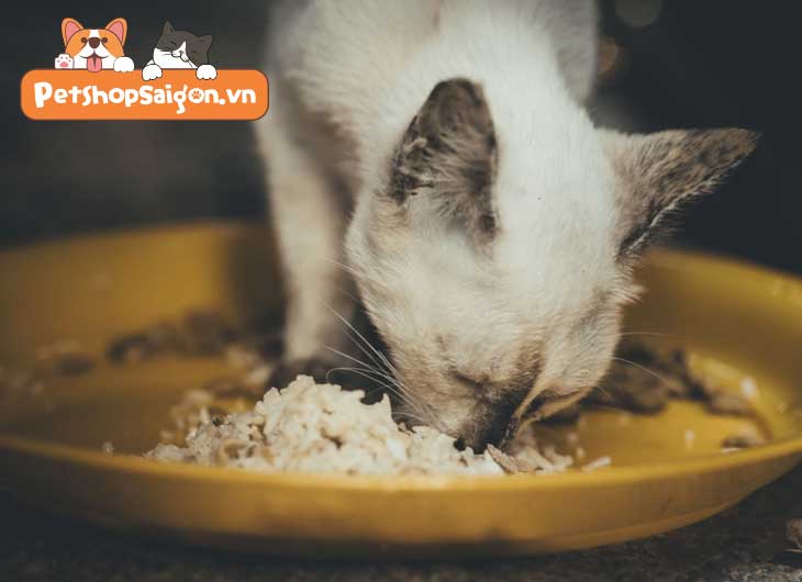 Nấu cơm thật chín, nhuyễn để dễ nuốt, vì răng mèo không nhai kỹ được. Trộn thêm thịt gà xé nhỏ hoặc cá hồi để tăng mùi hấp dẫn, kích thích khứu giác bé. Mỗi bữa chỉ cho lượng nhỏ, cách 1-2 giờ một lần, và đa dạng thực đơn để tránh chán.