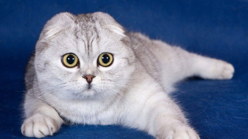 Đặc trưng nhất là đôi tai cụp sát đầu, tạo hình chữ L hoặc W tùy loại, kết hợp đầu tròn to, mắt long lanh xanh lá hay vàng nâu. Thân hình mũm mĩm, chân ngắn, đuôi dài thẳng tắp – tất cả làm nên vẻ ngoài “bánh bao” siêu dễ thương.