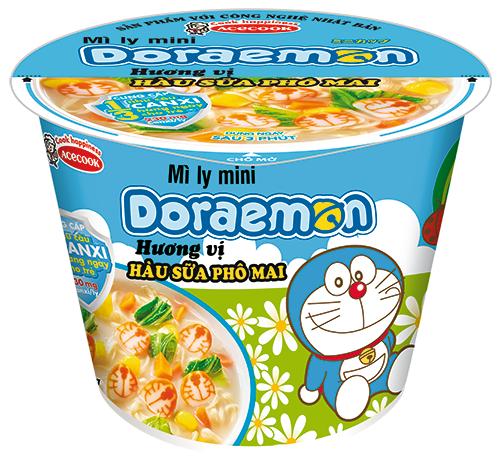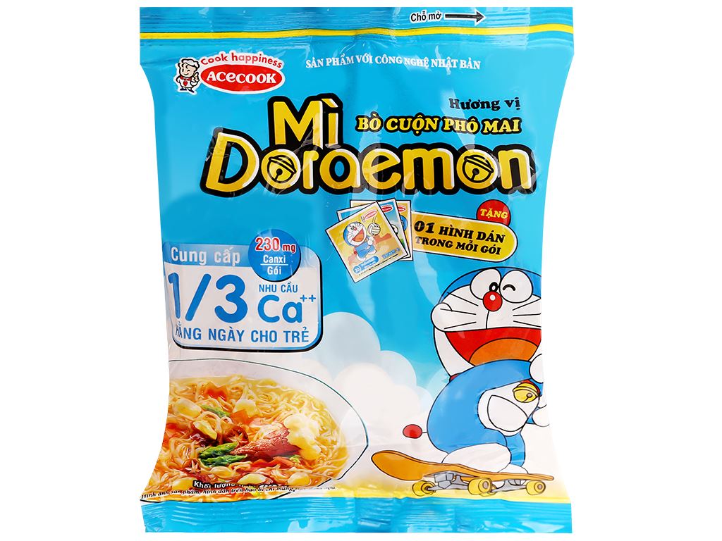 Mì Đô Rê Mon Chính Hãng hẳn đã không còn xa lạ với nhiều gia đình, đặc biệt là các bé yêu thích món ngon này. Một trong những sản phẩm nổi bật là Mì Doraemon hương vị BÒ CUỘN PHÔ MAI. Sản phẩm không chỉ thơm ngon mà còn rất thân thiện với trẻ nhỏ, bởi trong mỗi ly mì đều bổ sung 230 mg canxi, đáp ứng 1/3 nhu cầu canxi hằng ngày cho trẻ.