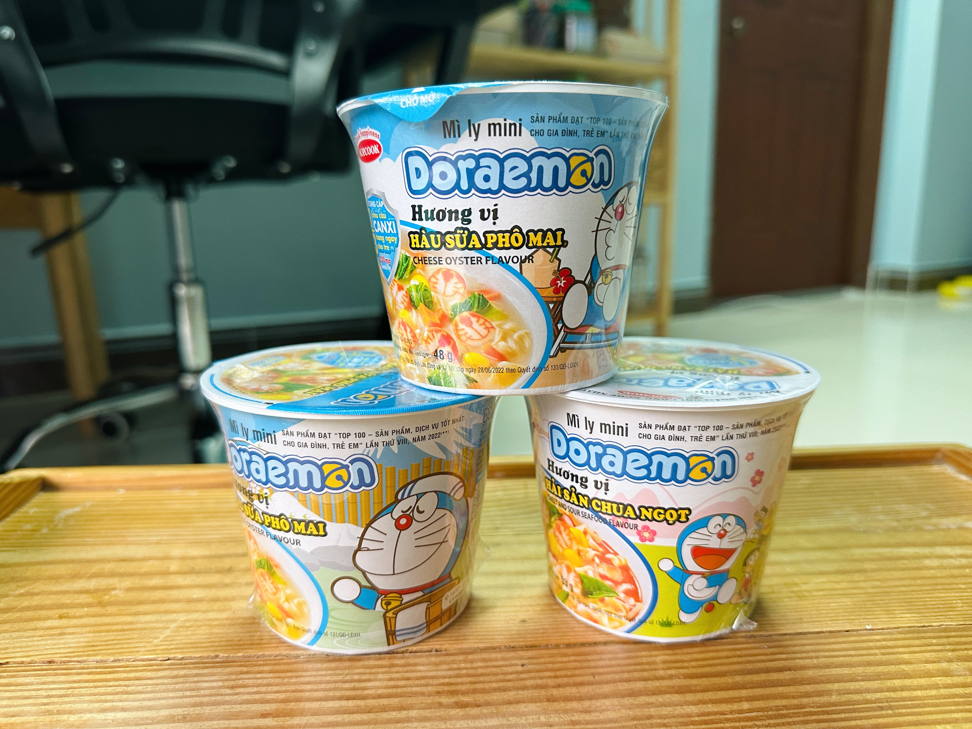 Ngoài ra, mì ly mini Doraemon với thiết kế sống động theo chủ đề “Doraemon & Bạn hữu” chắc chắn sẽ gây ấn tượng mạnh và mang đến niềm vui cho các bé. Hãy để trẻ trải nghiệm hương vị mì thơm ngon và bổ dưỡng từ Doraemon, một món ăn mà các bé sẽ muốn quay lại thường xuyên!