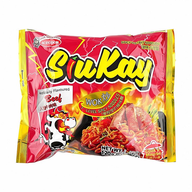 Mì Siêu Cay Hải Sản là một trong những món ăn nổi bật được yêu thích bởi hương vị đặc trưng và độ cay nồng. Với thời gian nấu chỉ khoảng 4 phút, bạn sẽ có ngay một bát mì thơm ngon và nóng hổi. Mỗi gói mì SiuKay nặng 128g cung cấp khoảng 524 calo, tương đương với 80-90% lượng năng lượng cần thiết cho một bữa ăn chính.
