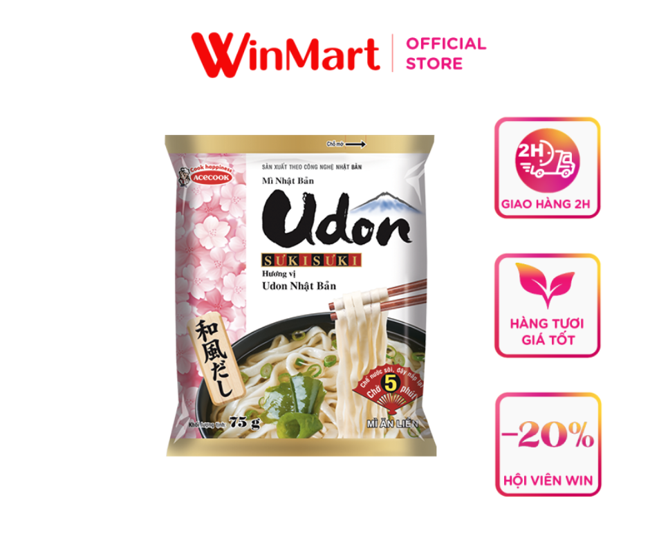Nếu bạn muốn trải nghiệm mì Udon hương vị cà ri, hãy thử mì Udon Suki Suki, đang được giảm giá đến 18%. Đặc biệt, VinMart còn có dịch vụ giao hàng miễn phí cho đơn hàng từ 300.000đ, nhanh chóng trong vòng 2 giờ, giúp bạn tiết kiệm thời gian mua sắm.
