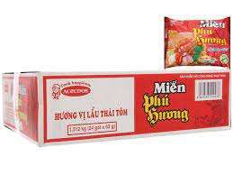 Miến Phú Hương là một trong những loại miến ăn liền được nhiều người ưa chuộng nhờ hương vị thơm ngon, tiện lợi. Hiện nay, giá của một thùng miến Phú Hương thường dao động khoảng 205.000 đến 250.000 đồng cho thùng 24 gói, mỗi gói trọng lượng khoảng 55g. Mức giá này khá hợp lý, phù hợp với những ai muốn mua số lượng lớn để dùng dần hoặc dự trữ.