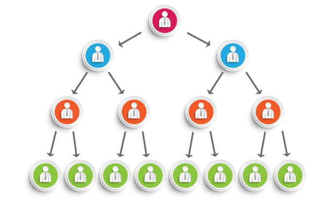 Ngược lại, mô hình kim tự tháp lại cho phép người tham gia kiếm tiền bằng cách tuyển thêm người mới vào hệ thống. Những người vào sau sẽ phải trả phí gia nhập, và những khoản phí này sẽ được chia cho những người nằm ở các cấp trên trong hệ thống. Dù có thể có sản phẩm hoặc dịch vụ đi kèm, nhưng lợi nhuận chính thường đến từ việc lôi kéo thêm người tham gia, chứ không phải từ việc bán hàng.