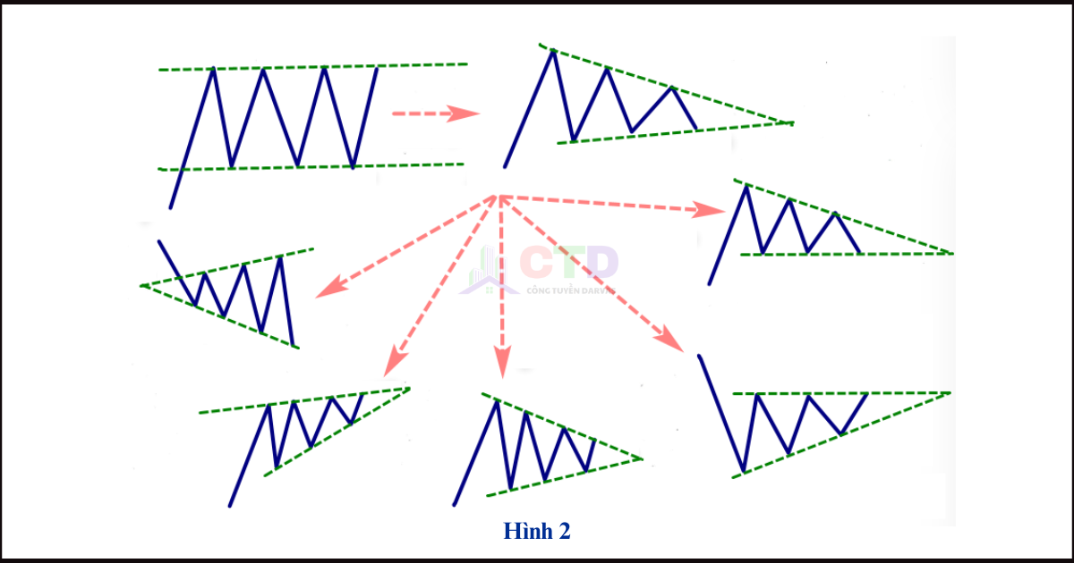 Trước khi hình thành mô hình này, thường sẽ có một xu hướng giảm rõ rệt. Khi nhìn vào các đáy và đỉnh của mô hình, bạn sẽ thấy đáy ngang gần như bằng nhau, trong khi các đỉnh liên tục giảm dần. Điều này tạo ra cảm giác giống như thị trường đang tạm dừng trước khi quyết định hướng đi tiếp theo.