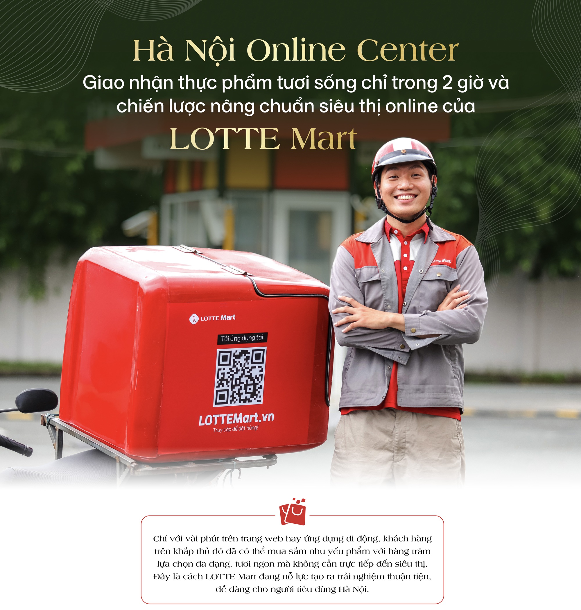 Đi chợ online với LOTTE Mart là một trải nghiệm thú vị và tiện lợi mà bạn không nên bỏ lỡ. Với ứng dụng và website chính thức LOTTEMart.vn, khách hàng dễ dàng đặt hàng từ những sản phẩm tạp hóa, quần áo, đồ điện tử và nhiều mặt hàng đa dạng khác. Chỉ cần chọn khung giờ và địa điểm nhận hàng trong danh sách LOTTE Mart cung cấp, bạn sẽ nhận được hàng hóa giao nhanh trong vòng 2 giờ.