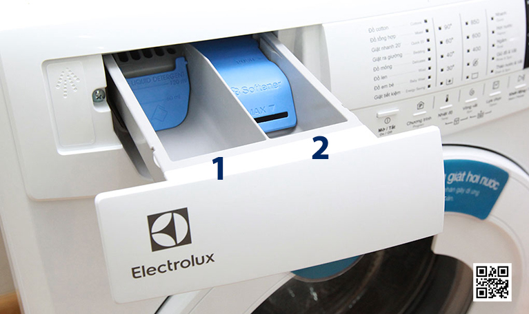Bạn có biết ngăn chứa nước xả trên máy giặt Electrolux chính là “người bạn thân” giúp quần áo mềm mại, thơm tho sau mỗi lần giặt không? Thường nằm ở ngăn bên phải, được đánh dấu bằng biểu tượng bông hoa dễ nhận biết, đây là nơi dành riêng cho nước xả vải.