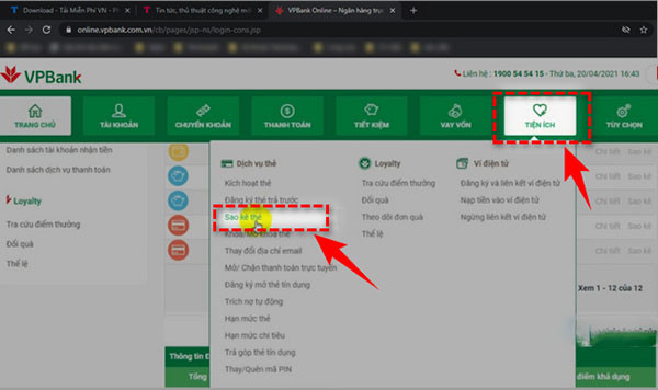Ngoài việc kiểm tra thông tin qua ứng dụng, bạn cũng có thể truy cập Internet Banking để xem sao kê dễ dàng. Nếu cần in sao kê để thanh toán, bạn chỉ cần đến chi nhánh VPBank gần nhất với giấy tờ cần thiết. Đảm bảo rằng bạn thanh toán đúng hạn để được kiểm soát tài chính hiệu quả.