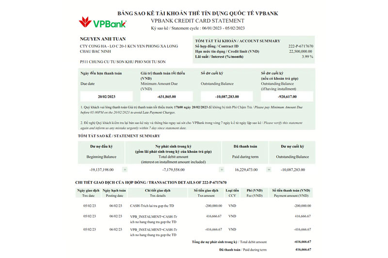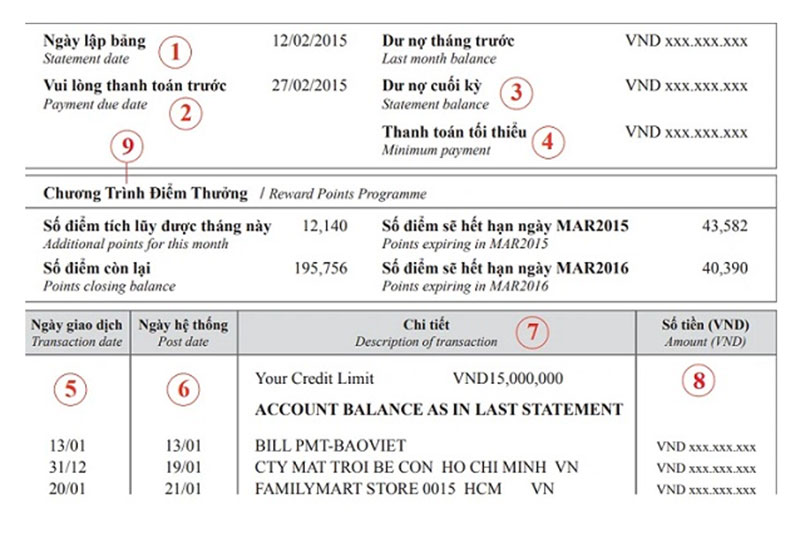 Những thông tin trong bảng sao kê ghi rõ các giao dịch từ ngày 21 tháng trước đến ngày 20 tháng này, giúp bạn nắm rõ tình hình chi tiêu của mình. Hãy kiểm tra số dư thẻ tín dụng và chủ động lên kế hoạch thanh toán để tránh lỡ hạn. Đặc biệt, nếu bạn có ý định hoàn tiền, hãy chú ý rằng chỉ áp dụng cho giao dịch nhất định, không bao gồm giao dịch trả góp hay rút tiền mặt. Như vậy, bạn sẽ có cách quản lý chi tiêu một cách hợp lý hơn!