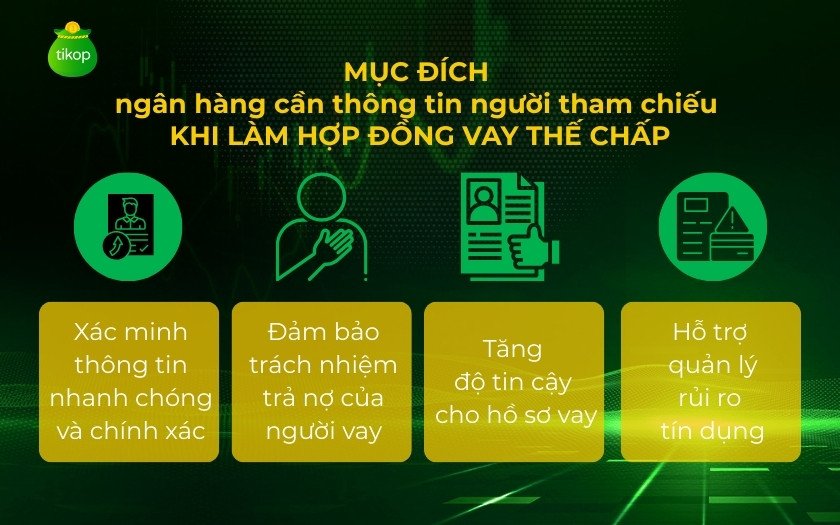 Vai trò của người tham chiếu rất quan trọng trong việc nâng cao độ tin cậy cho hồ sơ vay. Họ giúp ngân hàng xác nhận thông tin mà người vay đã cung cấp, đồng thời cho thấy mối quan hệ xã hội tích cực của người vay. Tuy nhiên, cần lưu ý rằng người tham chiếu không ký bất kỳ hợp đồng nào và không gánh chịu trách nhiệm pháp lý đối với khoản vay.