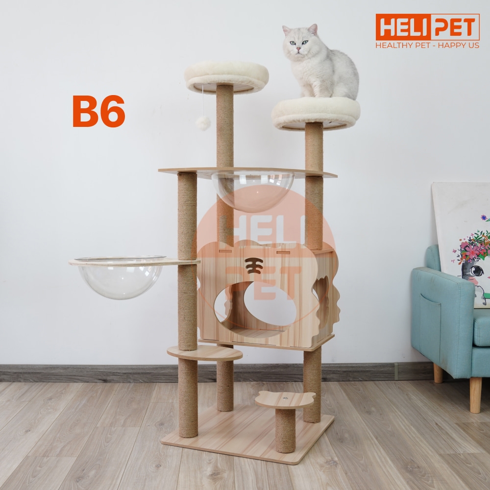 Mình thấy nhà cây không chỉ đẹp mắt mà còn siêu tiện lợi cho nhà chật. Các mẫu như HELIPET B35 cao 147cm, 3 tầng rộng rãi, phù hợp mèo đến 10kg, hay B6 cao 165cm bằng gỗ chắc chắn, giúp boss thư giãn mà không làm xước đồ đạc nhà bạn. Vật liệu chất lượng từ gỗ, vải nhung, sợi thảm đảm bảo bền bỉ, thẩm mỹ cao, thậm chí có kiểu treo tường tiết kiệm chỗ.